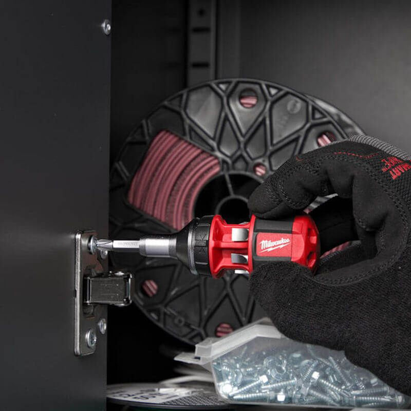 The Milwaukee 8-In-1 Compact Ratcheting Stubby Screwdriver features a robust full metal high torque ratchet, delivering enhanced control and up to twice the driving speed. Its precision-hardened bits ensure a secure fit and long-lasting durability, conveniently stored within the revolver-style handle. This compact, ergonomic tool is engineered for both trade professionals and serious DIYers, offering reliable performance in tight spaces.