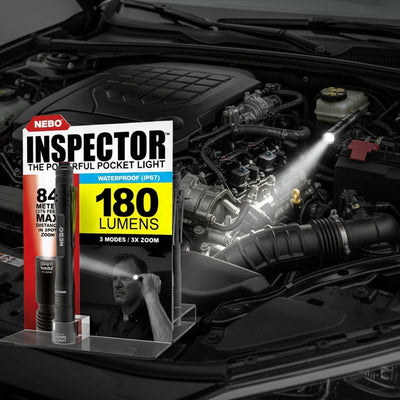 The Inspector™ is an innovative, powerful pocket light that outputs 180 lumens, with 3 light modes and 3x adjustable zoom that provides the perfect amount of light for any situation.